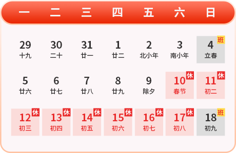 放假时间:2024年2月10日-2月17日