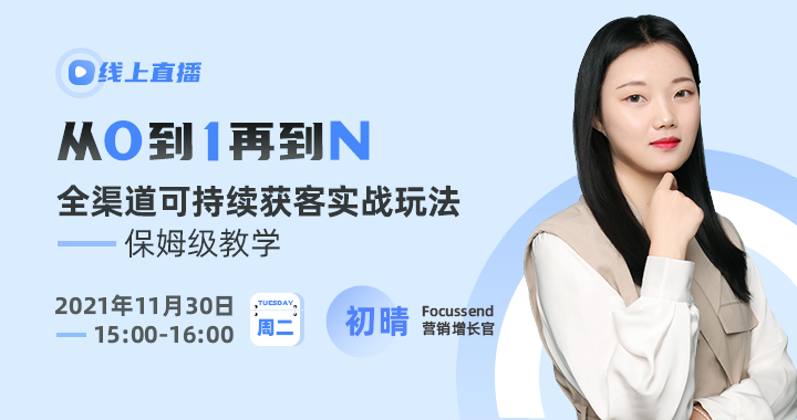 11月30日15:00 Focussend营销增长官初晴将在直播间与各位营销人共同分享全渠道获客实战经验。